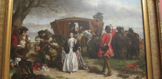 Now nobody wants to point a finger at friends and relatives but it was obviously an inside job so what did the authorities do? Blame the atrocity on the local highwayman, a French chap called Claude Duval, who was hanged at Tyburn on the 21 January 1670 – 80 years earlier. As you have probably guessed, I enjoy art galleries and not too long ago, I was delighted to find a painting of this very rascal hanging on the wall of Manchester Art Gallery – sadly replaced by a another painting a month or so ago.